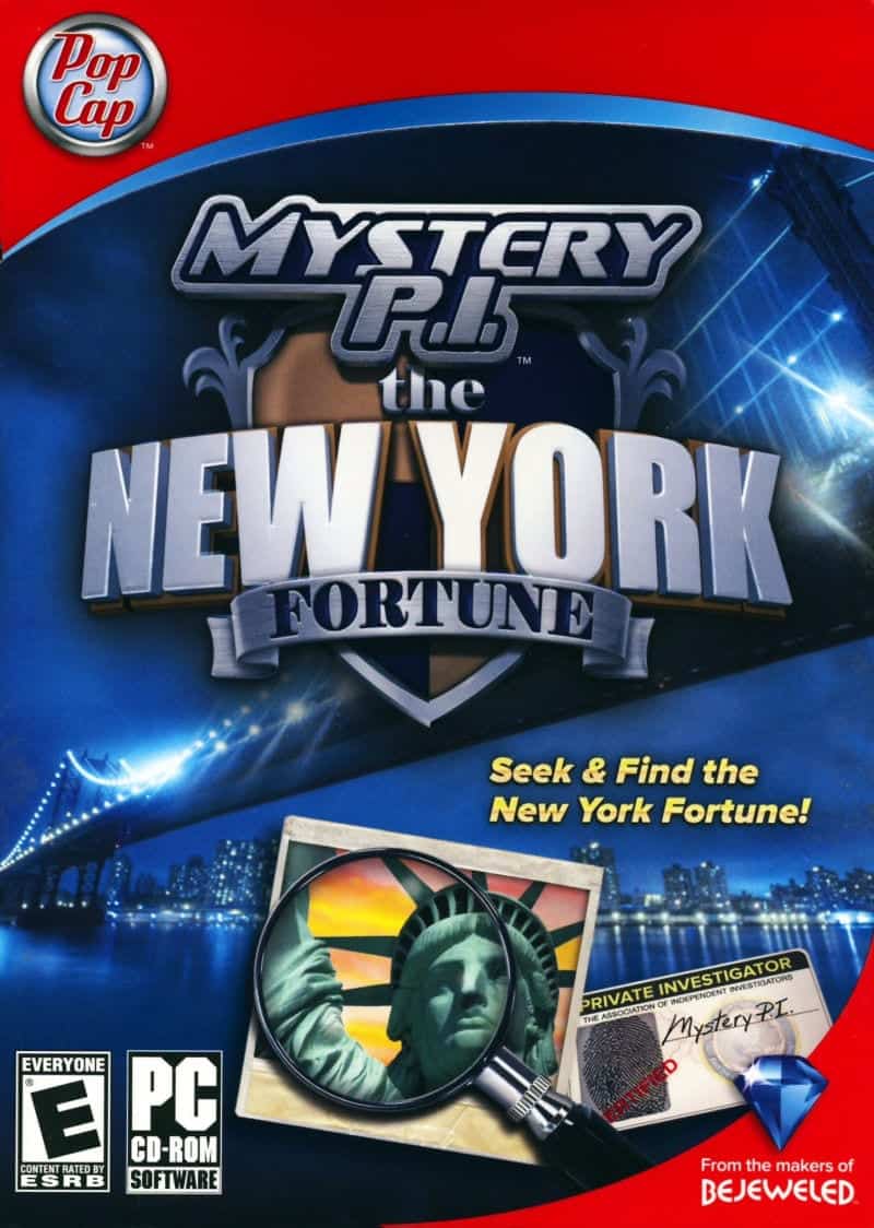 Mystery P.I.: The New York Fortune is a hidden object game where, as a private detective hired by the family of a New York billionaire to retrieve his will, the player has to search screens filled with objects, finding and clicking on all the items from a list at the left side. Finding several consecutive list item gives extra points. Besides the required objects, an apple and a key appear on all locations. They can be optionally collected to unlock two extra modes. Each item gives 5,000 points, with 2,500 added when making a combo. Hints cost 7,500 points, and there’s a wait between each use as the hint meter slowly fills back up.