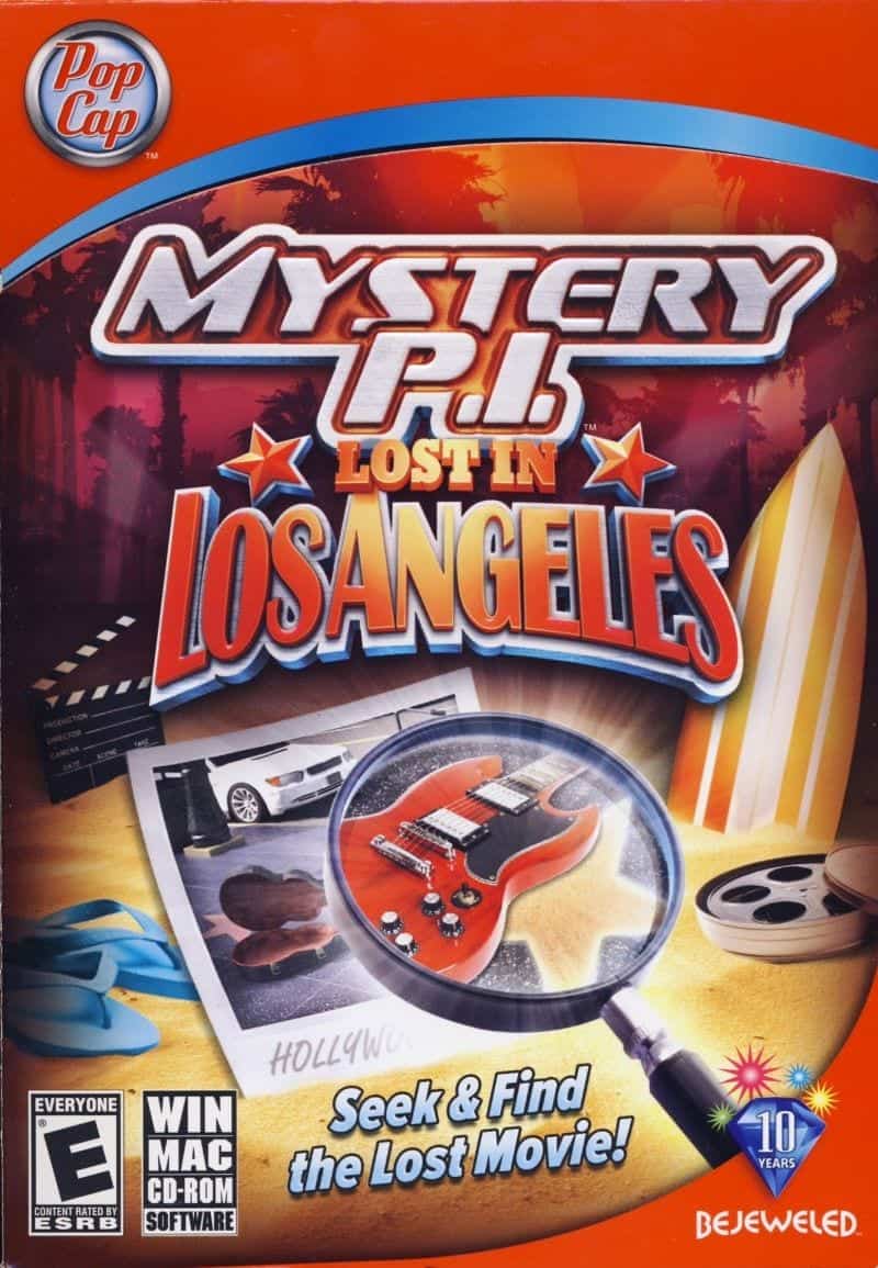 Mystery P.I.: Lost in Los Angeles is another straightforward hidden object installment to the SpinTop series of games, with identical gameplay to the earlier entries. Most of the time, the objective is to find and click on all the objects from a list at the left side of the screen, on scenes filled with assorted objects depicting places in Los Angeles and other related locations. Besides the list objects, the player can optionally collect two special items on every screen, a film reel and a key, to unlock two extra modes. The game can be played with or without a time limit, available as an option at the beginning.